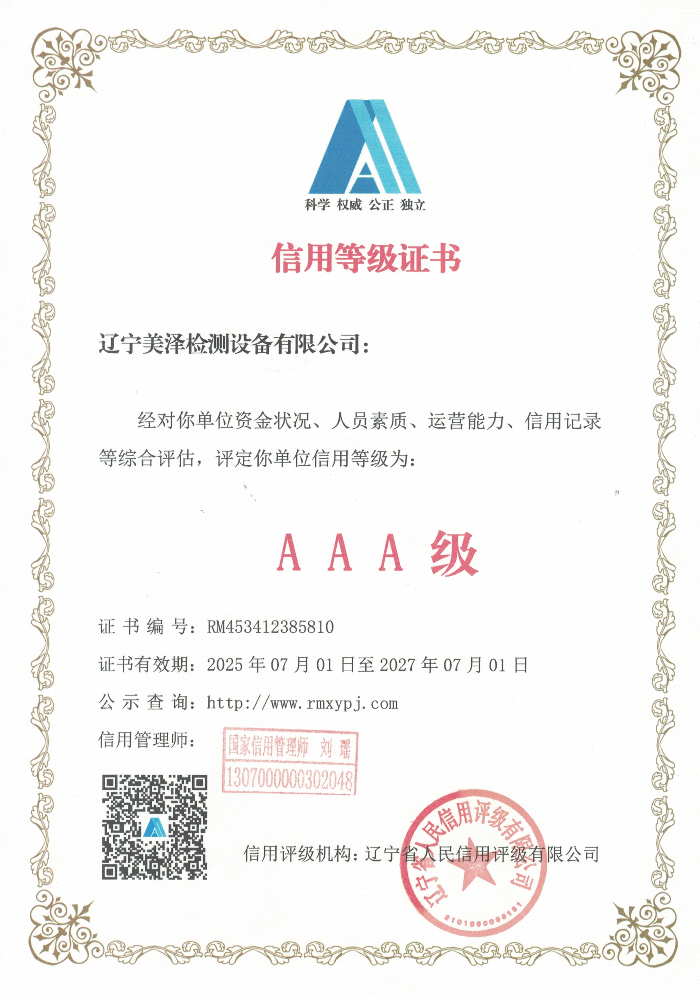 辽宁美泽检测设备有限公司位于沈阳市经济技术开发区,是一家专注于设计与研发检测设备及非标定制产品的个性化服务公司。公司拥有十年以上工作经验的专业技术团队,同时提供跨品牌的设备技术服务工作。公司秉承“敬业、守信、创新、求实”为经营理念,致力于为广大客户提供设计先进、可靠、高性价比的现代化智能检测设备及技术服务。